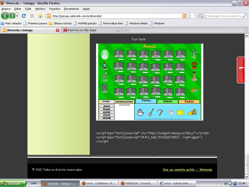 Oi gente!!! não tem o jogo Farm fun na ala diversão? se vc não viu clike aqui